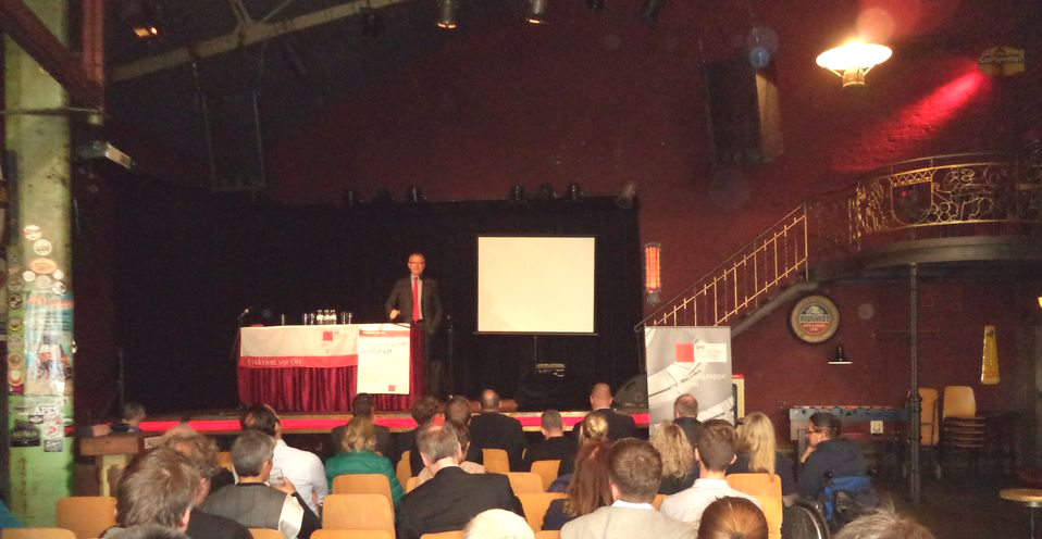 Eine besondere Rolle kommt dem Wohnungsbau zu. Olaf Scholz erläuterte das Hamburger Modell. Bei jedem neuen Bauvorhaben werde unter seine Regierung darauf geachtet, dass neben Eigentumswohnungen auch Sozialwohnungen und Mietwohnungen entstehen. Ohne seine Wahl vor 5 Jahren würde es heute in der Hafen City keine bezahlbaren Wohnungen geben. Staatssekretär Prof. Dr. Engelbert Lüdke-Daldrup erläuterte die Berliner Entwicklung und forderte dringend Änderungen des Baurechts, um auch zukünftig gemischte Quartiere mit einer angemessenen Verdichtung in den Städten bauen zu können.