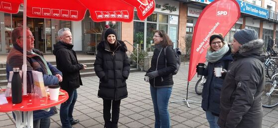 Neben unserem Staatssekretär für Energie und Betriebe, Tino Schopf, waren unsere Bezirksverordnete Diana Giannone sowie unsere stellvertretende Kreisvorsitzende Anette Unger mit an Bord. Neben allgemeinen Fragen zur neuen Regierung in Berlin und dem neuen Bündnis im Bezirk Pankow standen die Themen Mieten, Verkehr und Bauen sowie die weitere Entwicklung unserer Kieze im Mittelpunkt. Es ist uns wichtig, auch und gerade zwischen den Wahlen mit den Menschen ins Gespräch zu kommen und zu hören, was sie bewegt und wo wir als SPD helfen können. Daran werden wir festhalten.
