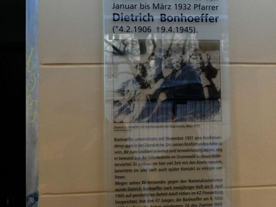 Zur Erinnerung an Dietrich Bonhoeffer wurde heute zusammen mit vielen Bürgerinnen und Bürgern am Haus Oderberger Straße 61 im Prenzlauer Berg feierlich eine Gedenktafel für Dietrich Bonhoeffer enthüllt. Der Ökumenische Arbeitskreis Prenzlauer Berg und die Evangelische Kirchengemeinde am Weinberg/Zionskirche hatten zum 70. Todestag des großen Theologen und Mitglied der bekennenden Kirche eingeladen.