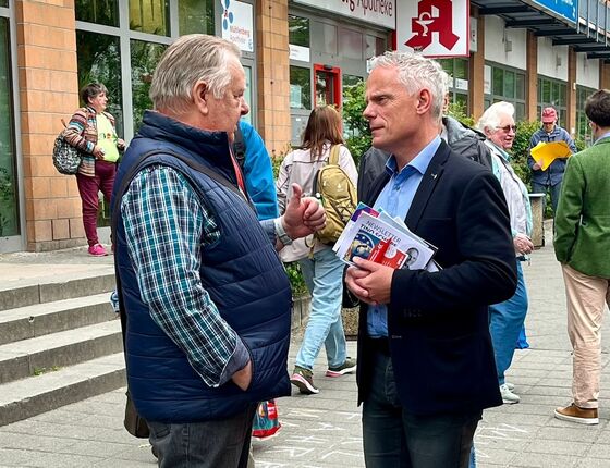 Bei strahlend blauem Himmel startete meine monatlichen Bürgersprechstunden vor dem Mühlenberg-Center und am Antonplatz in den Mai. Gemeinsam mit Mitgliedern der SPD habe ich über die Arbeit vor Ort und im Abgeordnetenhaus informiert. Gleichzeitig konnte ich neue Anliegen aus der Nachbarschaft aufnehmen. Viele Menschen sprachen mich auf meine Kiezspaziergänge im Sommer an. Ich freue mich über das rege Interesse und kann Ihnen sagen, dass der Flyer mit den Terminen schon bald in Ihrem Briefkasten zu finden sein wird.