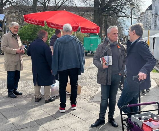Bei wechselhaftem Aprilwetter führte ich heute am Rande des Wochenmarktes am Arnswalder Platz Gespräche mit der Nachbarschaft. Mich interessiert unter anderem, was Sie beschäftigt, wie ich Ihnen helfen kann und welche Ideen Sie für unseren Kiez haben. Viele Nachbarinnen und Nachbarn hatten diesmal Fragen zur geplanten Fahrradstraße in der Hufelandstraße. Ich freue mich jedes Mal auf die informativen Hinweise und Vorschläge, die von Ihnen kommen und nehme sie gern in meine Arbeit als Ihr Abgeordneter auf.