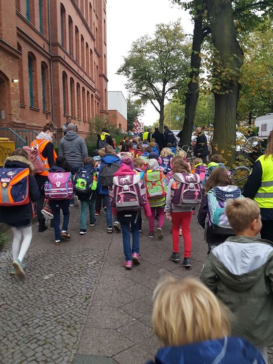 Die Idee ist einfach: Eine Gruppe von Kindern geht zusammen zur Schule und wird dabei von einem oder mehreren Erwachsenen begleitet. Das hat mehrere Vorteile.