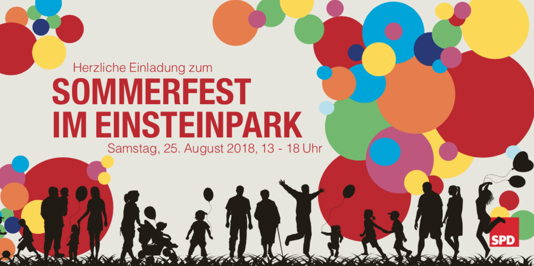 Die SPD in Pankow lädt auch in diesem Jahr wieder zu ihrem traditionellen Sommerfest ein. Dieses findet am Sonnabend, 25. August ab 13.00 Uhr im Einsteinpark (Ele) statt.
