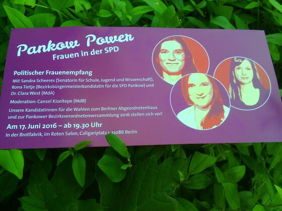 Politischer Frauenempfang mit Sandra Scheeres (Senatorin für Schule, Jugend und Wissenschaft), Rona Tietje (Bezirksbürgermeisterkandidatin für die SPD-Pankow), Dr. Clara West (MdA) und Dr. Margaretha Sudhof (Staatssekretärin für Finanzen). Moderation: Cansel Kizeltepe (MdB). Kommen Sie vorbei und lernen Sie unsere Kandidatinnen kennen! Teilnahme nur nach Anmeldung unter: asf@spd-pankow.de oder per Post an: SPD-Kreisgeschäftsstelle, z. H. ASF-Pankow Ulrike Rosensky, Berliner Str. 30, 13189 Berlin.